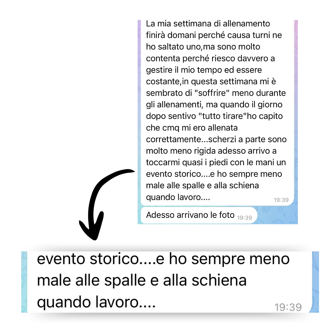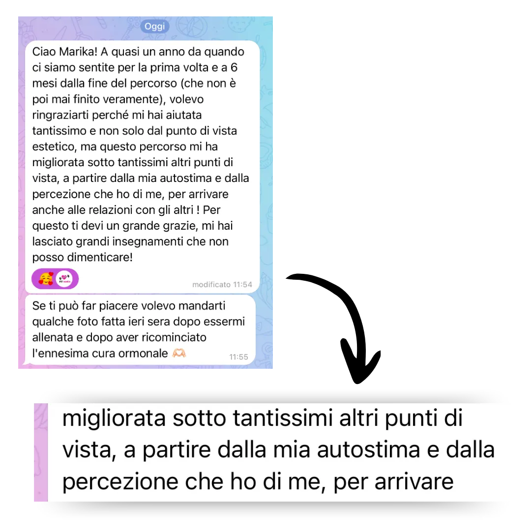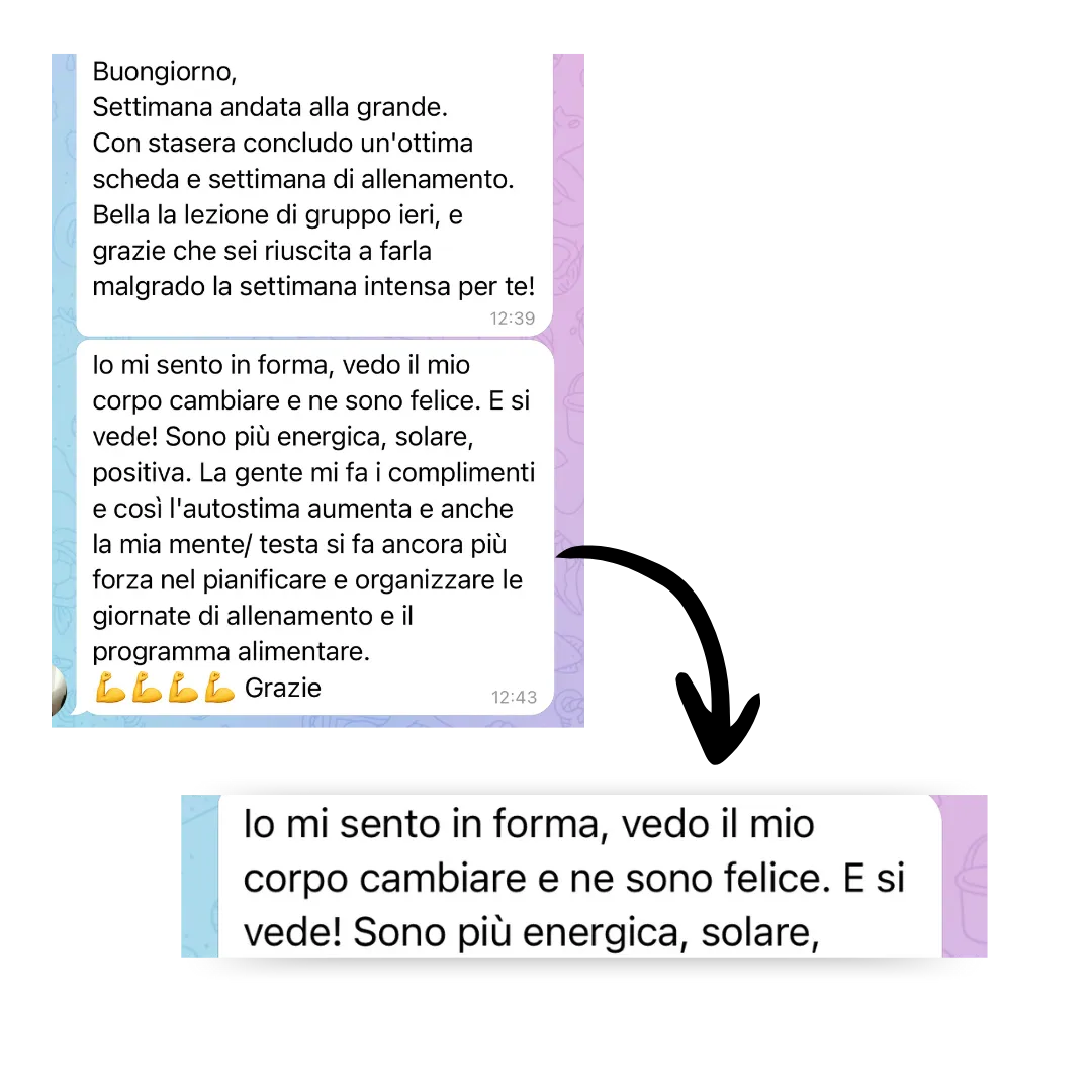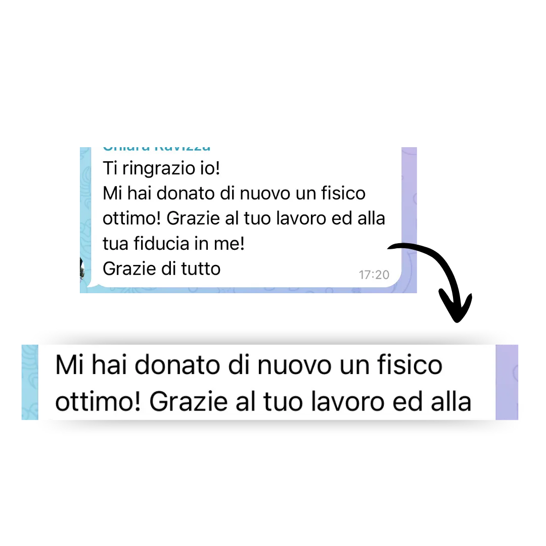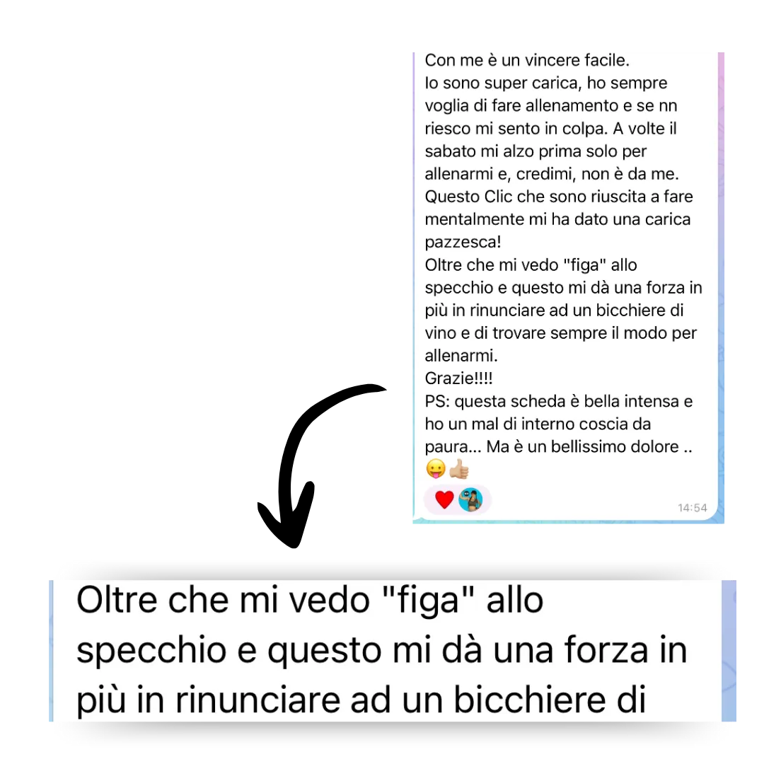 Nel corso di questi anni ho sviluppato uno speciale metodo di allenamento che permette a chiunque lo provi di perdere peso, ridurre la ritenzione idrica e ottenere un fisico snello SENZA dover rinunciare ai carboidrati o andare tutti i giorni in palestra.